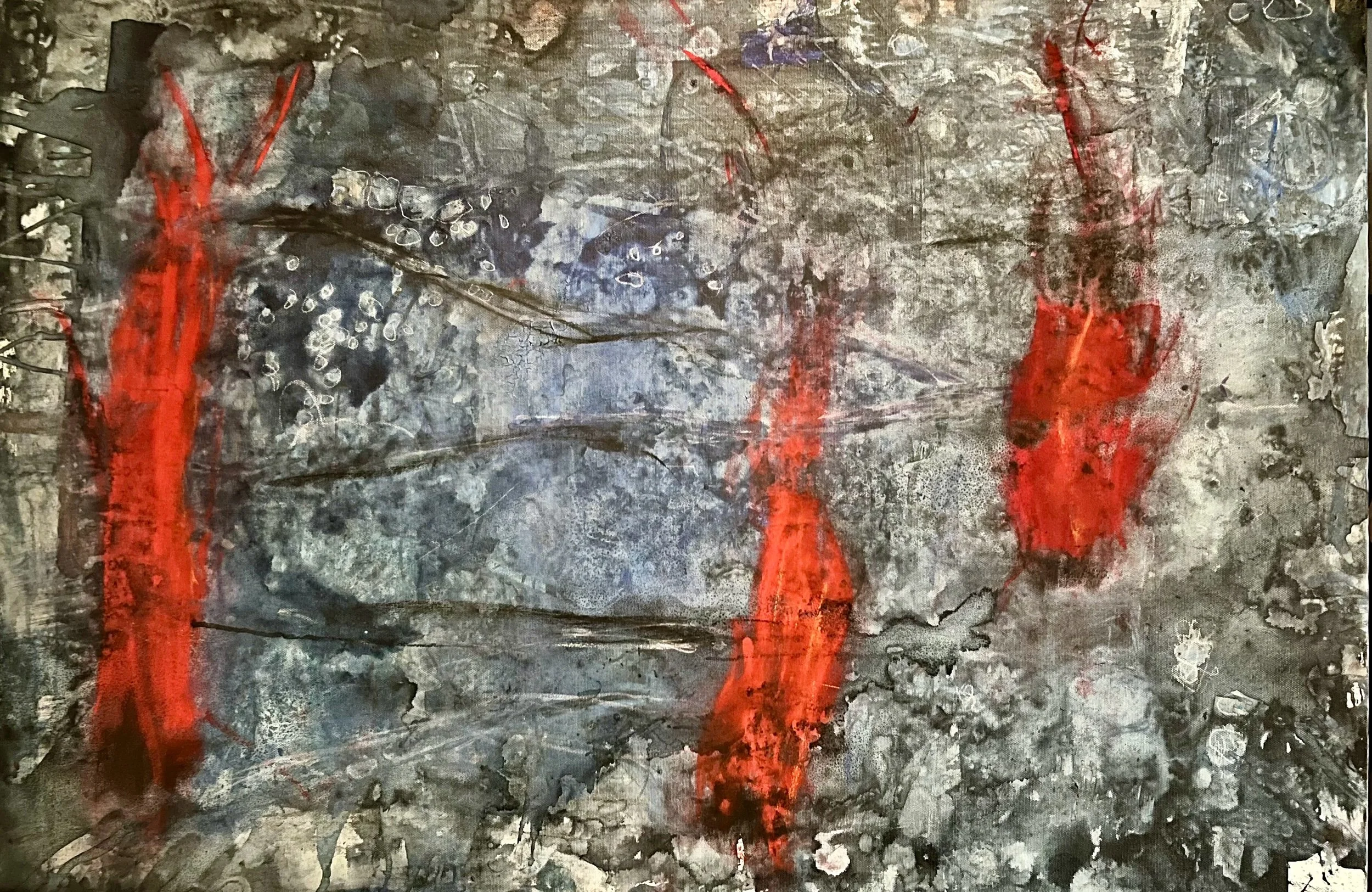 art › three little fires Image 1 of 1 three little fires $850.00 acrylic, charcoal, gouache, isopropyl alcohol, and tresemme hair serum 24x36 Quantity: Add To Cart Added! acrylic, charcoal, gouache, isopropyl alcohol, and tresemme hair serum 24x36